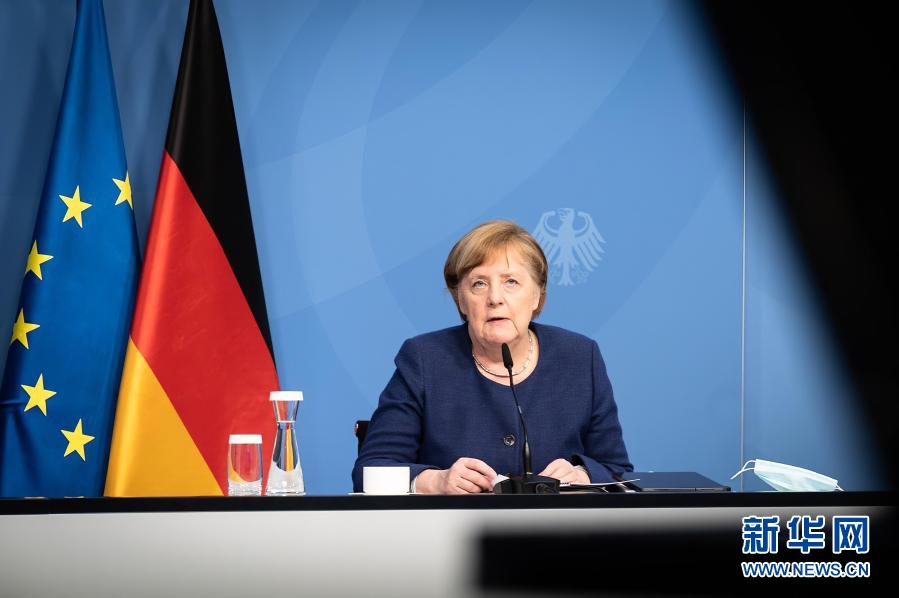 2月25日,德国总理默克尔参加欧盟领导人视频峰会。
