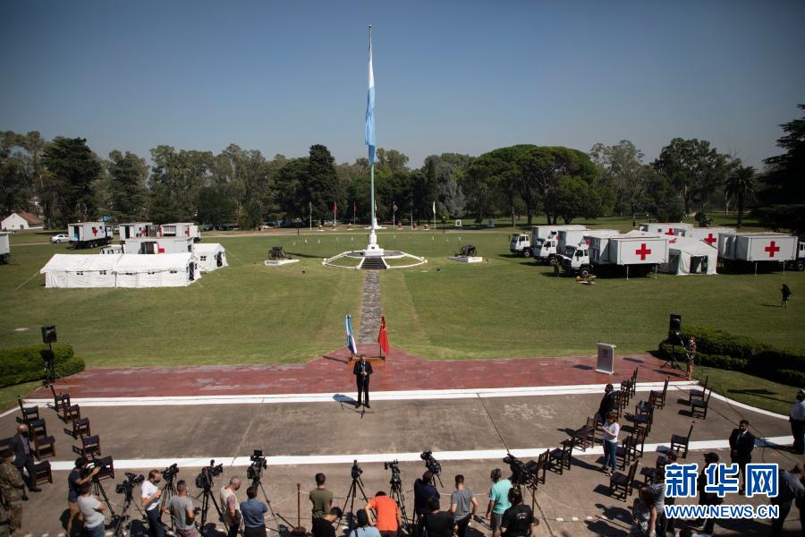 中国国防部援助阿根廷军队一座野战医院的交接仪式25日在布宜诺斯艾利斯市郊区五月兵营举行。
