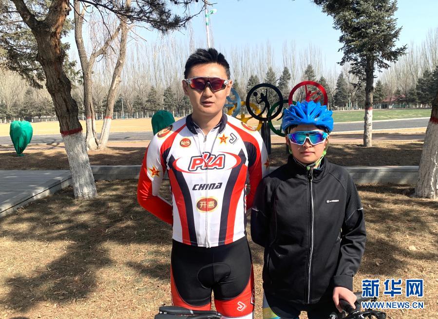 2月24日,在多巴基地,青海省体育运动学校自行车队教练吴佩伦(左)和队员李莹在训练后合影。