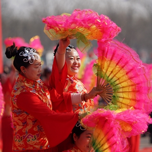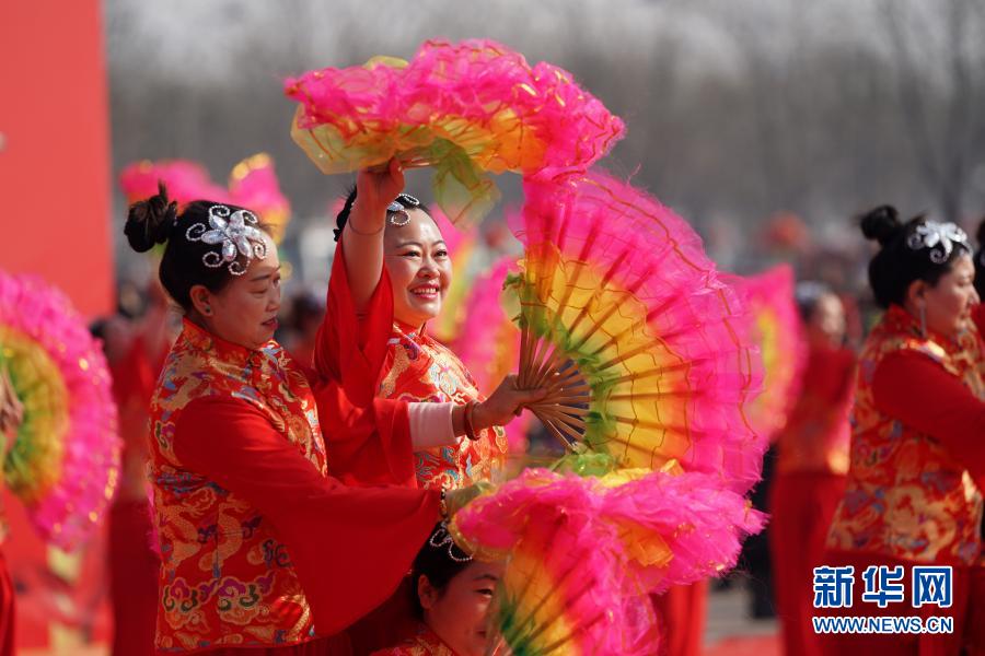 2月26日,山西省灵丘县红石塄乡红石塄村村民在表演舞蹈。