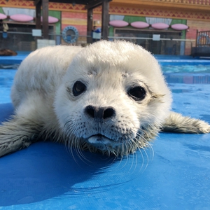 这是一只活泼温顺的雄性斑海豹,也是在上海海昌海洋公园出生的首只斑海豹幼崽。由于是第一次生产,斑海豹妈妈在育儿方面经验不足,好在有海兽保育员及时协助,小斑海豹现在已能够熟练找到母乳的位置并进食。目前,小斑海豹的状态非常好,正在斑海豹妈妈和保育员的悉心照料下茁壮成长。