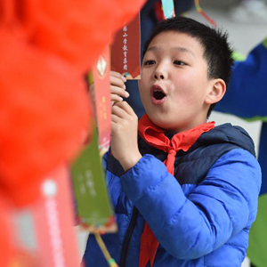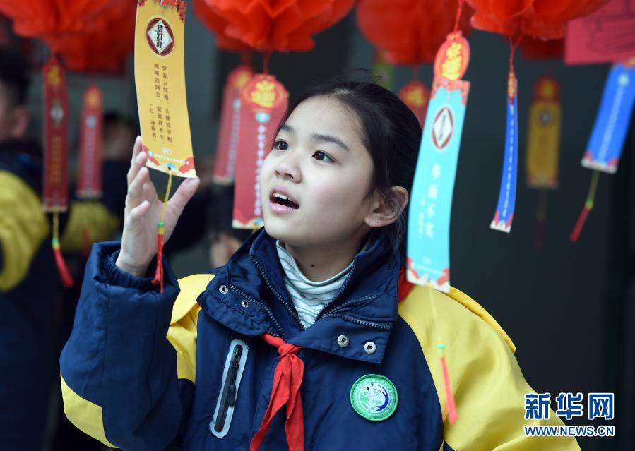 2月26日,合肥市梦园小学教育集团枫林路学校的学生在猜灯谜。