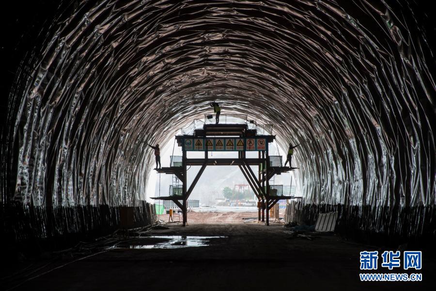 2月26日,在中建五局承建的重庆嘉陵江磁井段防洪护岸综合整治工程三标段项目施工现场,工人在进行隧道二衬防水板自检。
