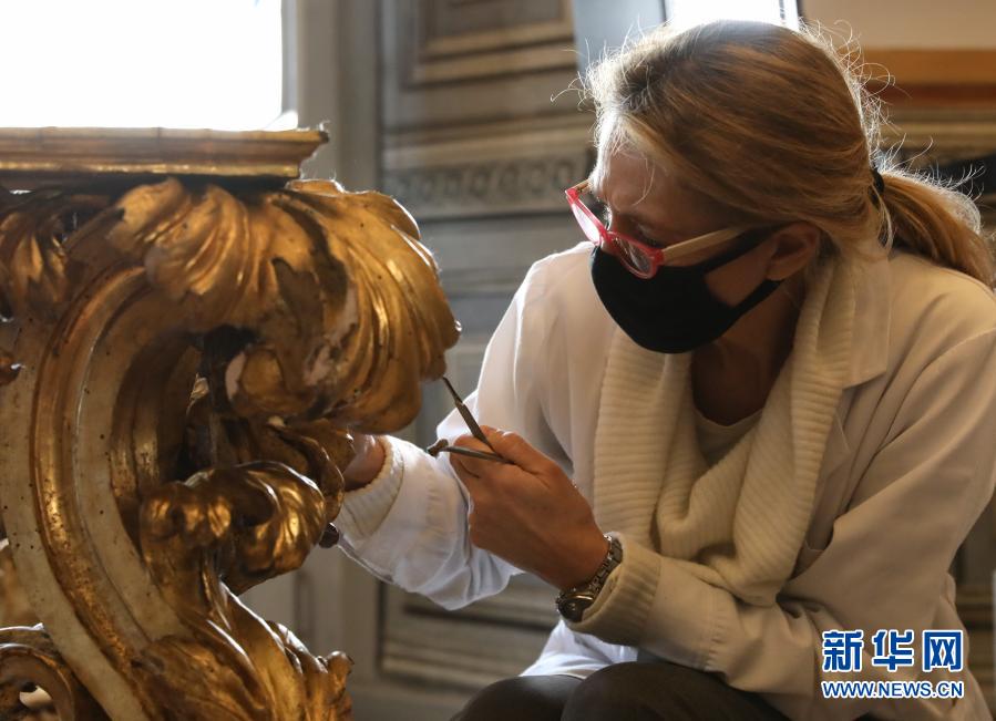2月25日,一名工作人员在意大利首都罗马的斯巴达画廊里工作。