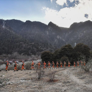 2月26日,西藏林芝市森林消防支队指战员使用背负式电动水枪进行消防演练。新华社记者 晋美多吉 摄