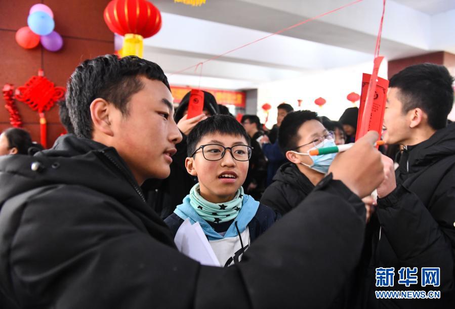 2月26日,学生在合肥市第三十五中学猜灯谜。