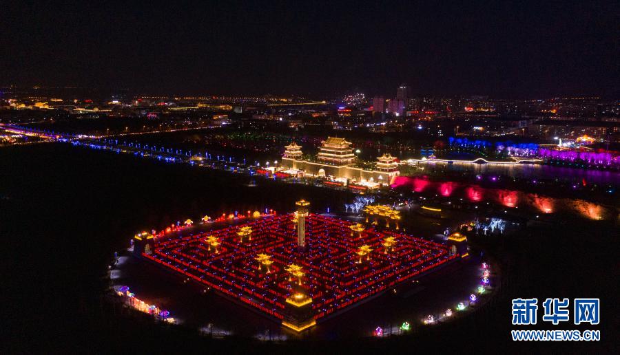 这是2月26日拍摄的宁夏盐池县九曲民俗文化园和长城关(无人机照片)。