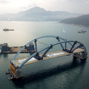 2月26日,香港将军澳大桥主桥安装成功(无人机照片)。新华社记者 李钢 摄