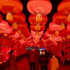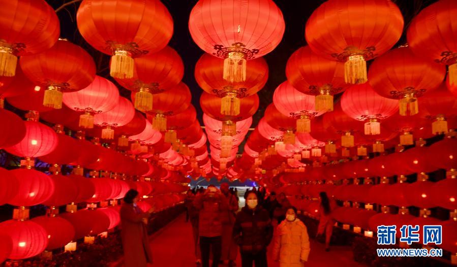 2月26日,市民在北京市丰台区王佐镇南宫五洲植物乐园观赏花灯。