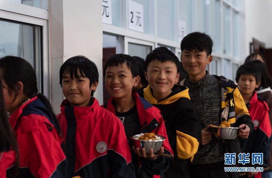 云南省昭通市镇雄县岩洞脚九年一贯制学校的孩子们在食堂打饭(2020年11月11日摄)。新华社发(王冠森摄)