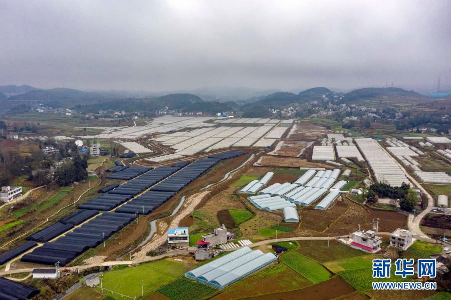 2月27日拍摄的贵州省毕节市黔西县甘棠镇大寨村羊肚菌种植基地(无人机照片)。新华社发(范晖摄)