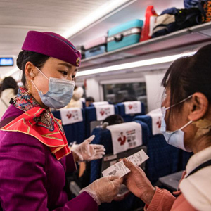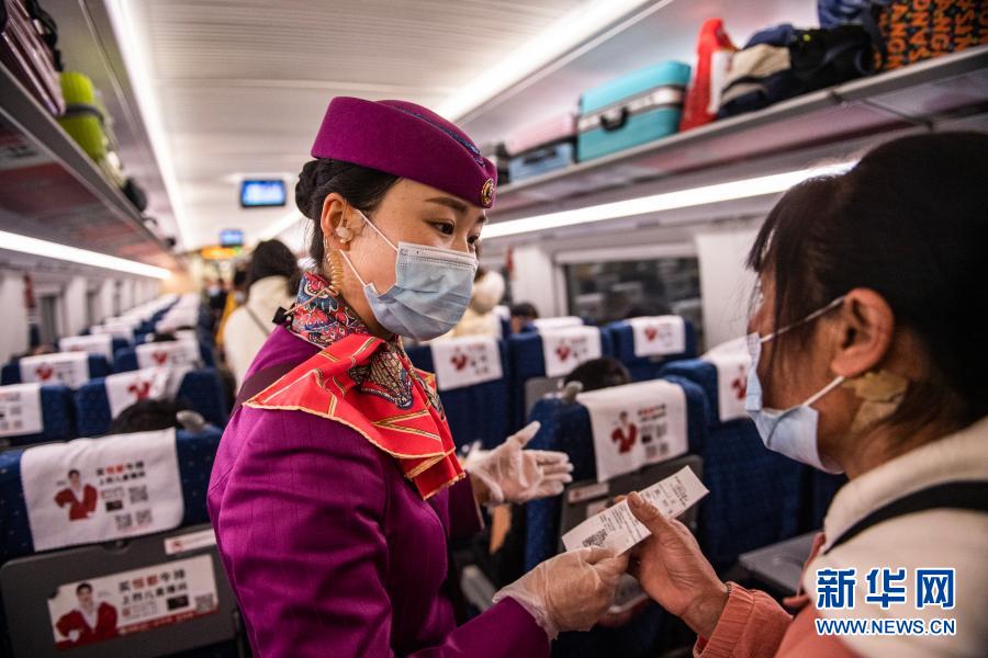 当日,近200名贵州籍务工人员乘坐由贵阳北开往浙江宁海的G2334次列车,前往绍兴、宁波等地返岗复工。中国铁路成都局集团有限公司贵阳车站、贵阳客运段强化站车联动,热情服务“接力”,确保务工人员顺利出行。
