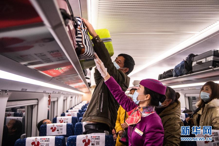 2月27日,贵阳客运段工作人员协助务工旅客摆放行李。新华社记者 陶亮 摄