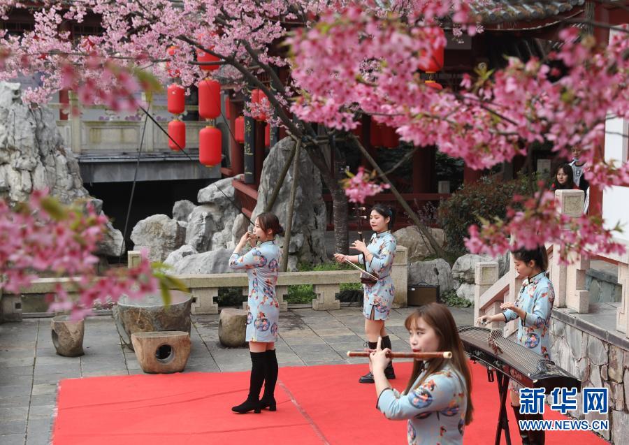 当日,武汉东湖樱花园开园,东湖樱花节同步举办。园内绽放的樱花和文艺表演吸引游客前来赏花观景,放松身心。