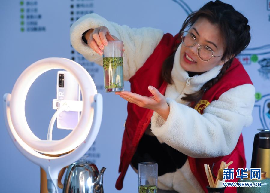 2月27日,淳安县里商乡“助农帮帮团”的志愿者帮助茶农在网上销售春茶。新华社记者 徐昱 摄
