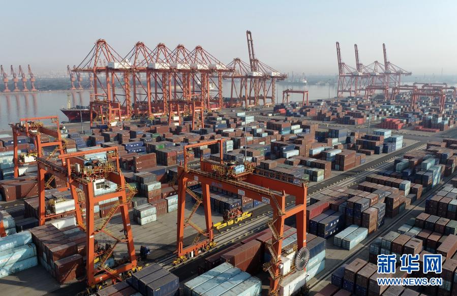 这是2月27日拍摄的唐山港京唐港区集装箱码头(无人机照片)。