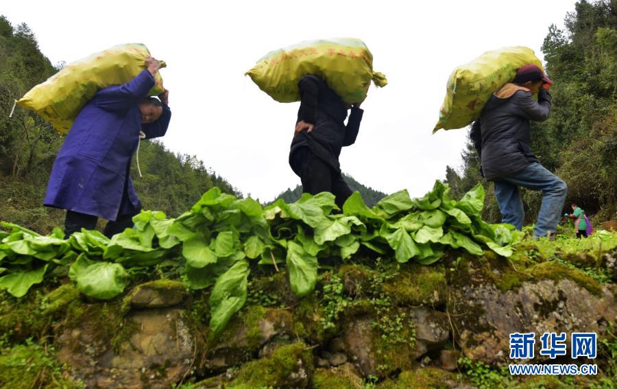 2月27日,酉阳县苍岭镇岭口村村民在搬运榨菜原料青菜头。