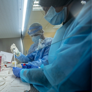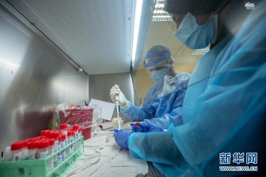 2月27日,医务人员在约旦河西岸城市伯利恒的一家新冠病毒检测实验室工作。