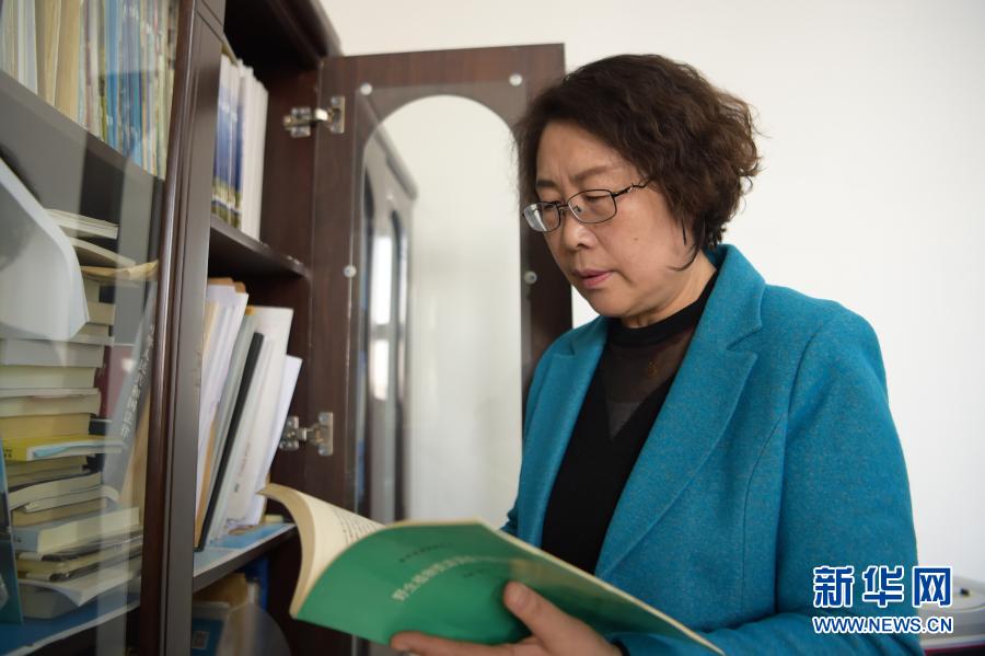 2月24日,在乌兰察布市林业和草原局的办公室里,郭艳玲在查阅资料。新华社记者 李志鹏 摄