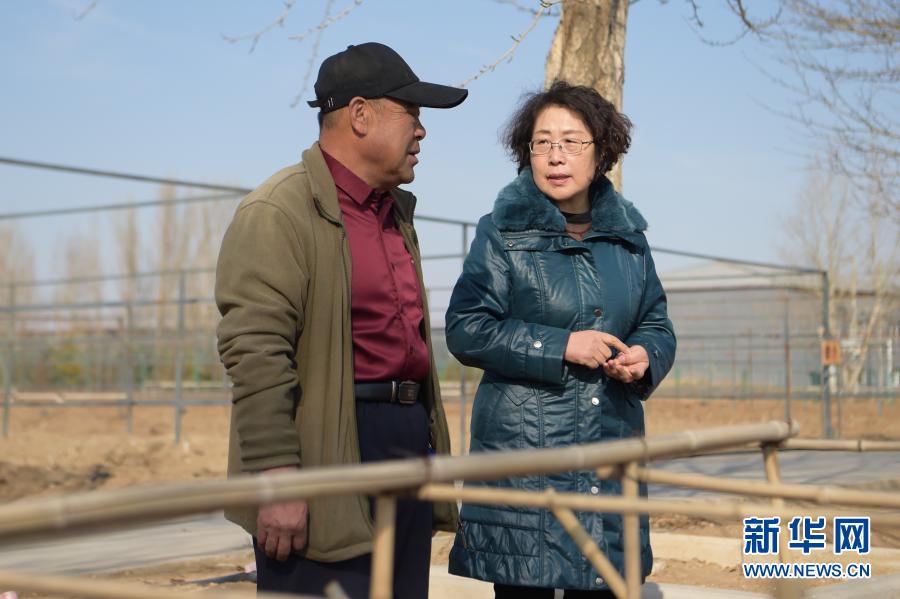 2月24日,在位于乌兰察布市的冷凉蔬菜院士工作站试验田里,郭艳玲(右)与工作人员交流。新华社记者 李志鹏 摄