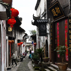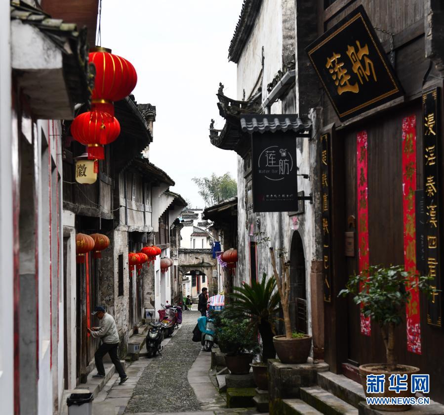 安徽省黄山市歙县古城区域内的古民居布局典雅,古街、古巷、古牌坊交织,吸引众多游客观光游览。