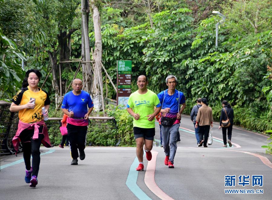 2月28日,长跑爱好者在福山郊野公园环山绿道上跑步。