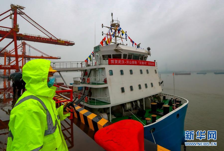 2月28日,停靠在码头的“汉海5号”准备首航驶往上海洋山港。
