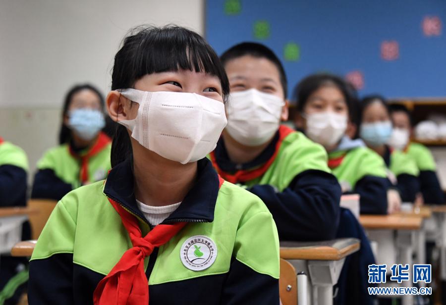 3月1日,北京市海淀区太平路小学的学生们在上“开学第一课”。