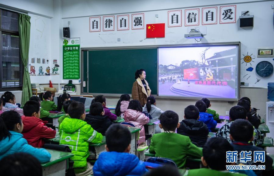 3月1日,贵州省贵阳市芳草地国际学校贵阳分校四(一)班的学生上开学第一课《从小学党史》。