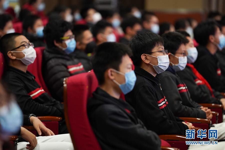 3月1日,在北京师范大学附属实验中学,学生参加学校组织的“开学第一课”活动。