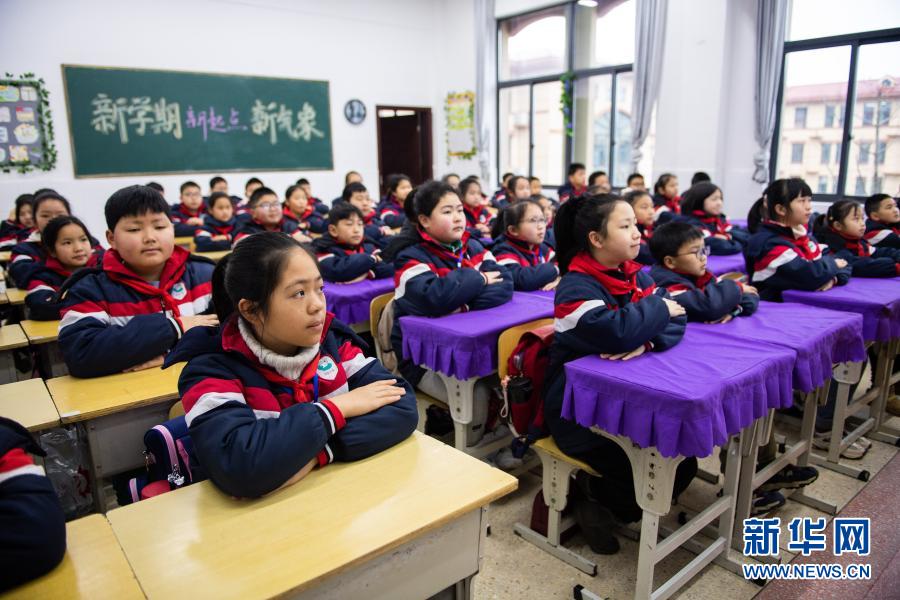 3月1日,在湖南长沙宁乡玉潭街道实验小学,学生上开学第一课。