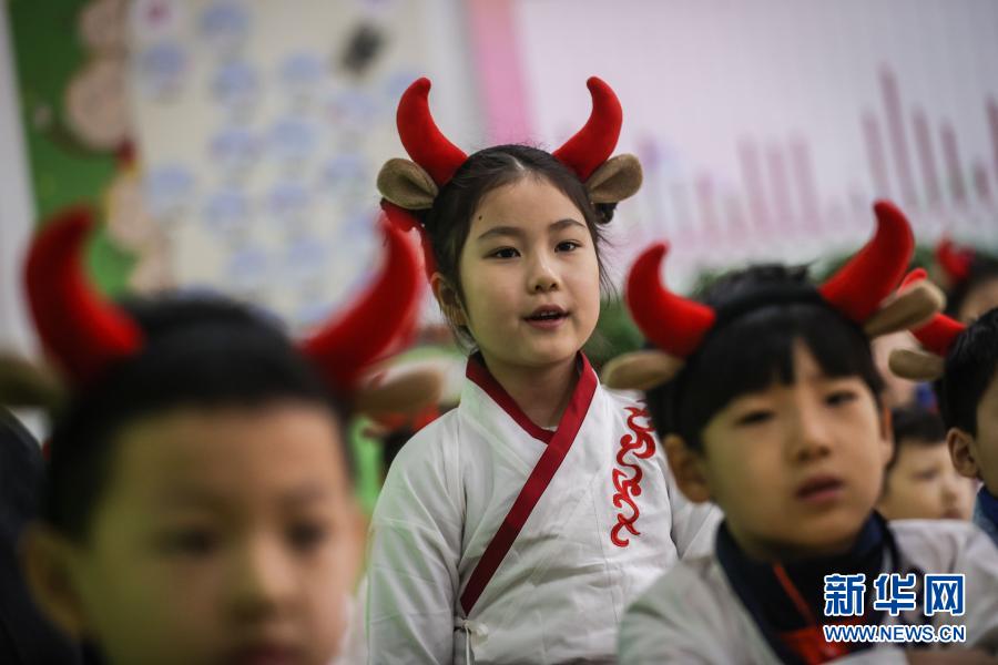 3月1日,辽宁省沈阳市和平一校长白岛一分校1年级2班的学生在上开学第一课。