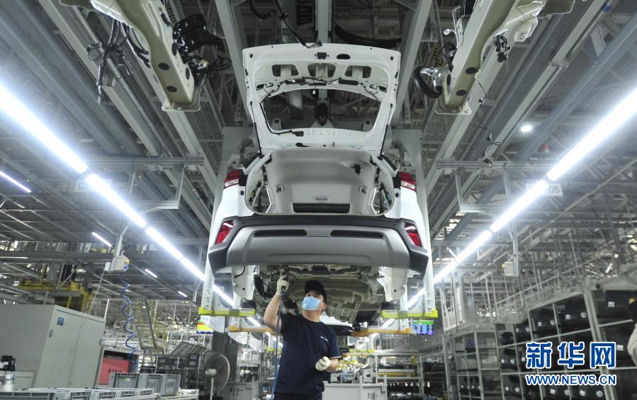 北京现代沧州工厂的工人在生产线上工作(2020年5月19日摄)。新华社记者杨世尧摄
