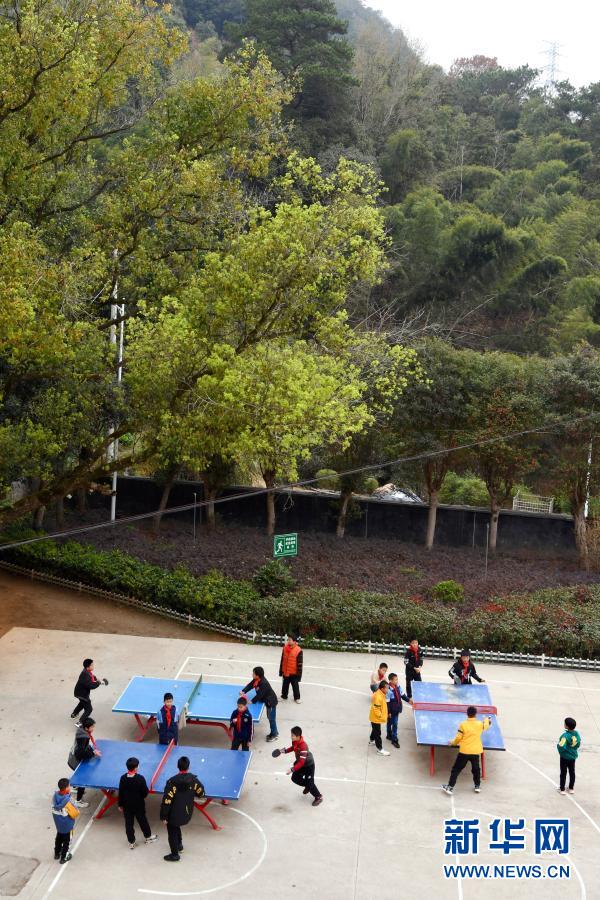 3月1日,西津畲族小学学生在课间打乒乓球。新华社记者姜克红摄