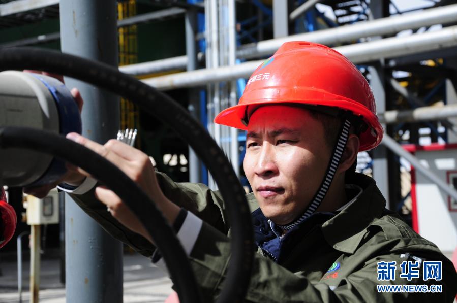 盐湖集团青海三元钾肥有限公司的技术人员陆逞赢在检查设备仪表(2月25日摄)。新华社记者 王浡 摄