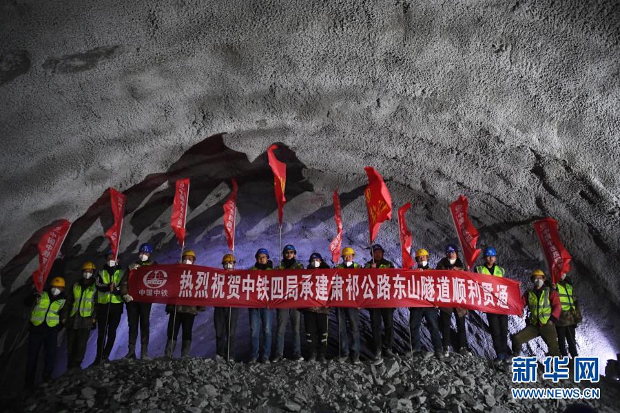 3月2日,中铁四局的施工人员庆祝国道213线东山隧道贯通。新华社记者 陈斌 摄