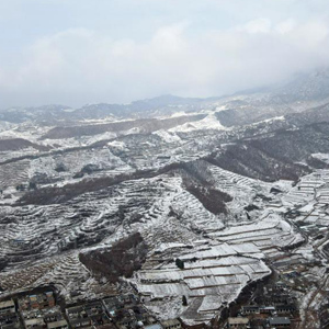 连日来,河北省沙河市西部山区出现降雪天气,白雪覆盖的梯田宛如一幅水墨画。