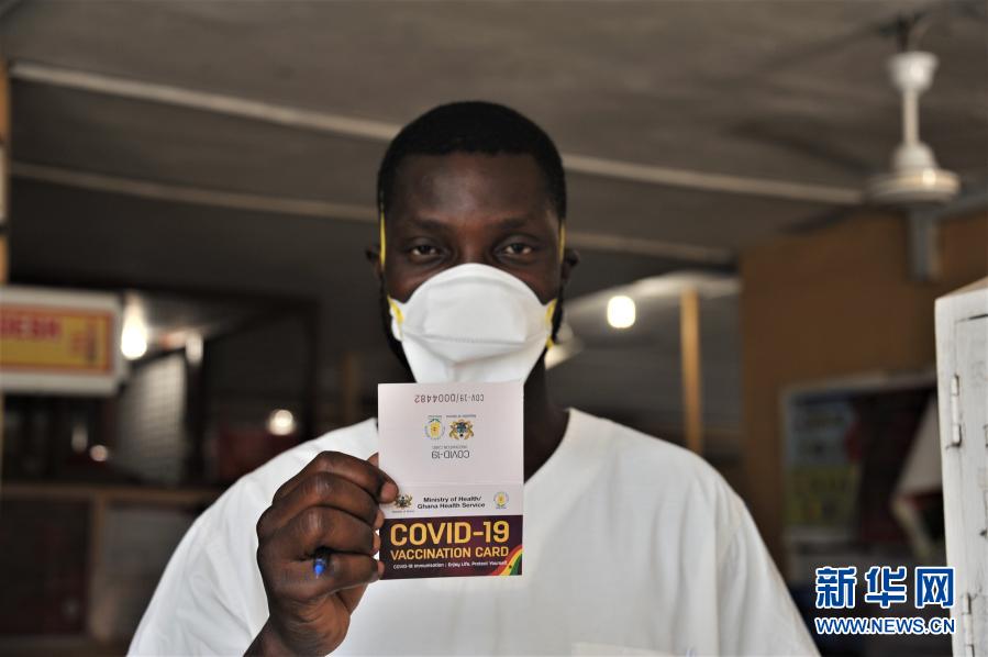 3月2日,在加纳首都阿克拉,一名男子展示新冠疫苗接种卡。新华社发(赛特摄)