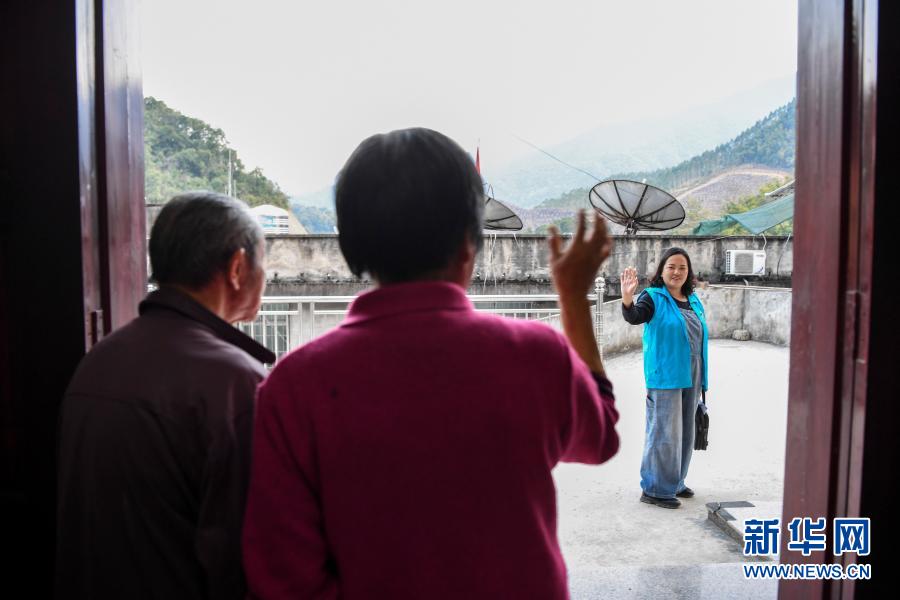 在广西贺州市昭平县昭平镇龙潭村,出诊结束后,陈坤与村民挥手告别(2月23日摄)。新华社记者 曹祎铭 摄