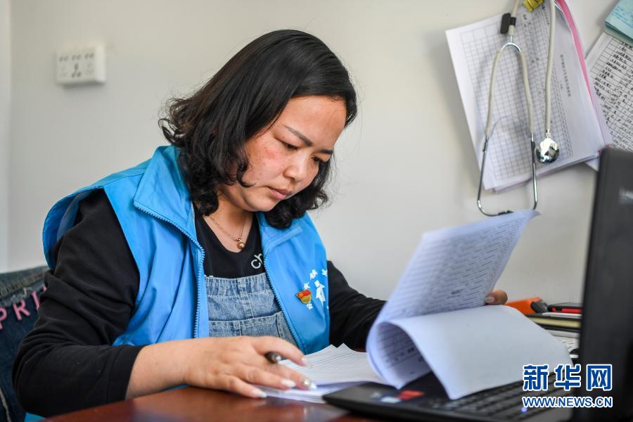 陈坤在广西贺州市昭平县昭平镇龙潭村卫生室填写村民健康档案信息(2月23日摄)。新华社记者 曹祎铭 摄