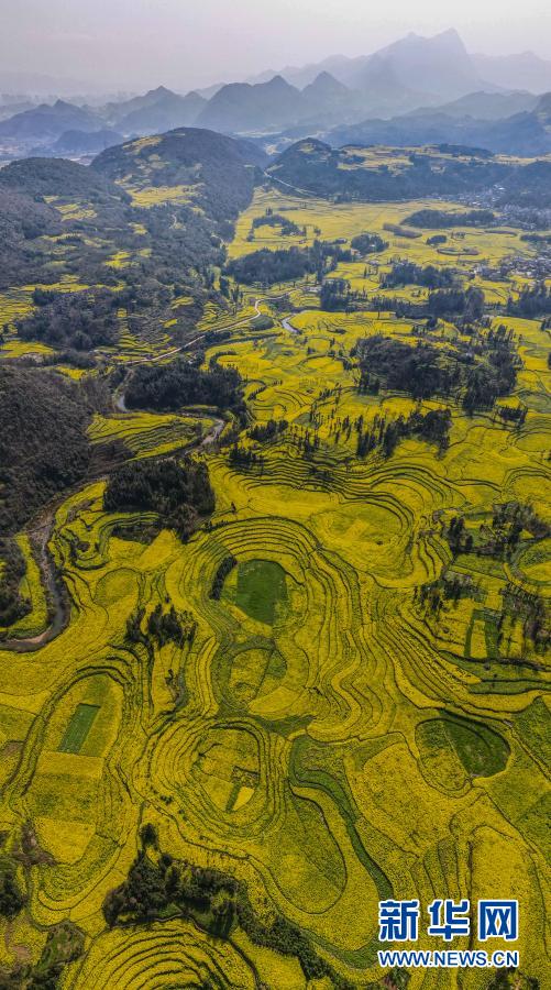 这是在罗平县螺丝田景区拍摄的油菜花(3月2日摄,无人机照片)。新华社记者 王冠森 摄