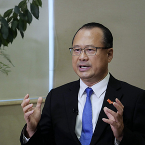 全国政协常委、香港新华集团主席蔡冠深在香港接受新华社记者专访(2月23日摄)。新华社记者 王申 摄