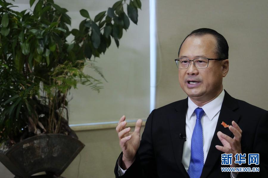 全国政协常委、香港新华集团主席蔡冠深在香港接受新华社记者专访(2月23日摄)。新华社记者 王申 摄