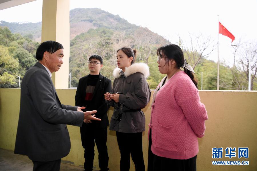 3月1日,庄桂淦(左一)在开学第一天与老师们交流教学计划。新华社记者姜克红摄
