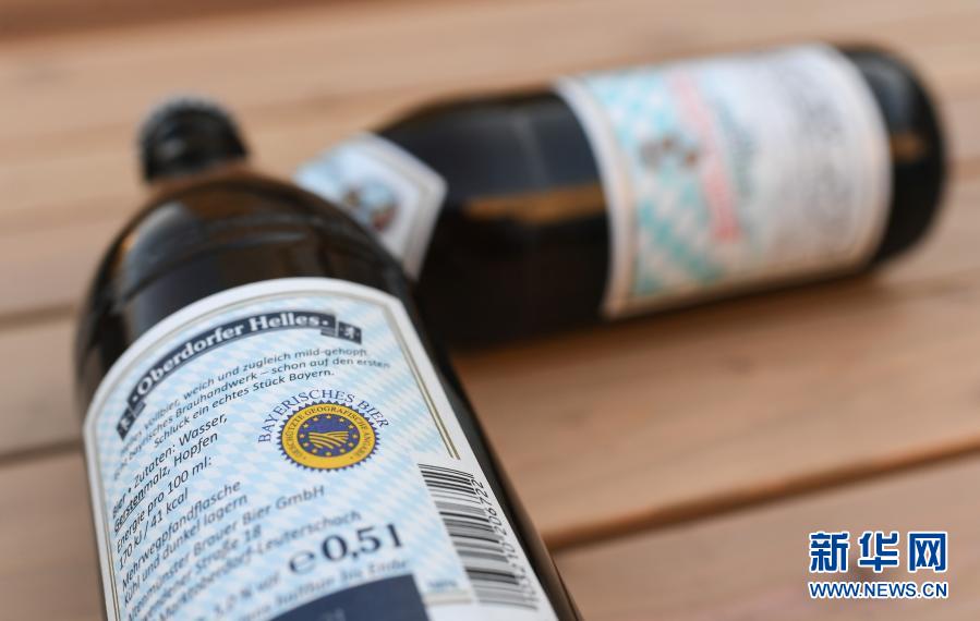 这是3月2日在德国法兰克福拍摄的一款巴伐利亚啤酒瓶身上标注的地理标志。德国的巴伐利亚啤酒是中欧地理标志协定中首批受保护的欧盟地理标志产品。