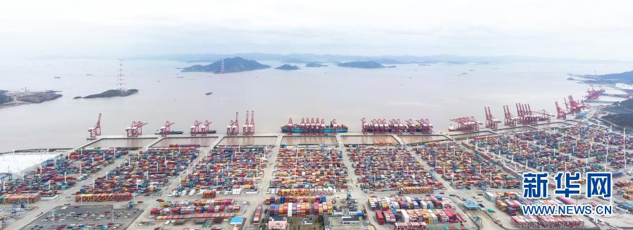 3月3日拍摄的宁波舟山港穿山港区(无人机照片)。