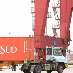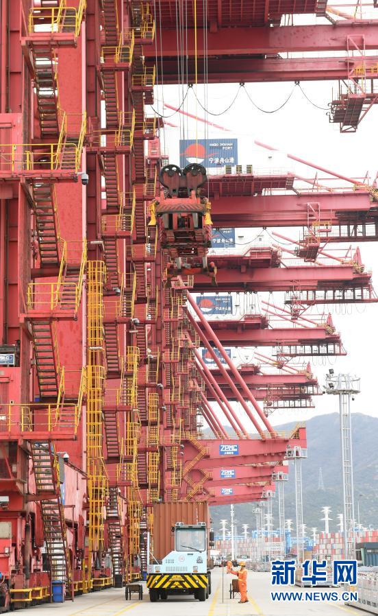 3月3日,工作人员在宁波舟山港进行集装箱装运作业。