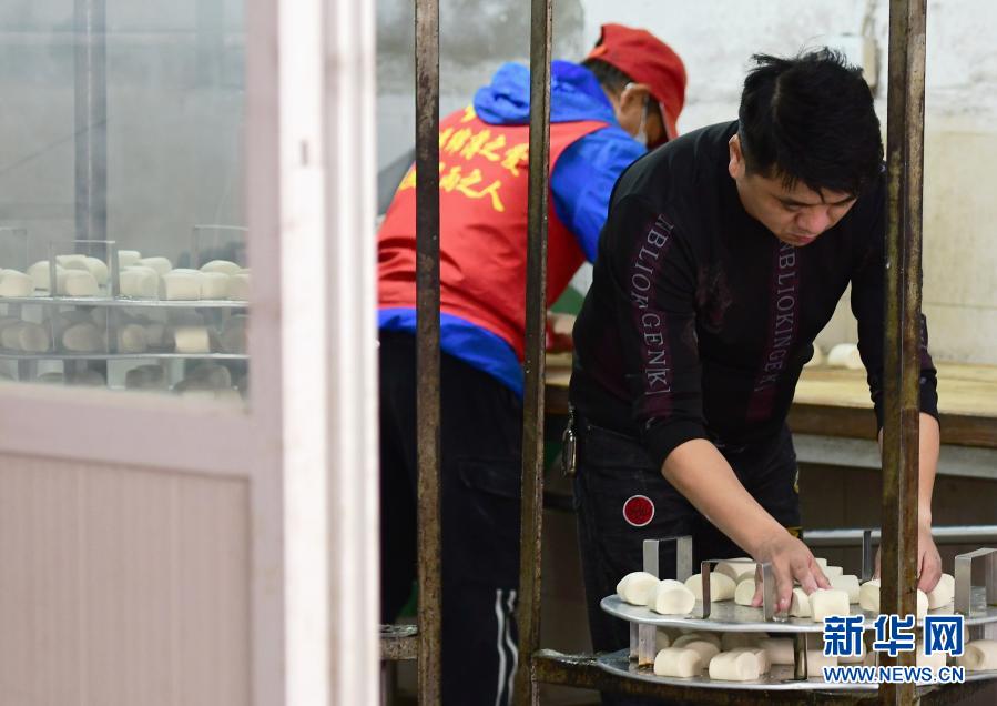 3月3日,石狮永恒阳光馒头店老板阿峰(右一)在制作馒头。新华社记者魏培全摄