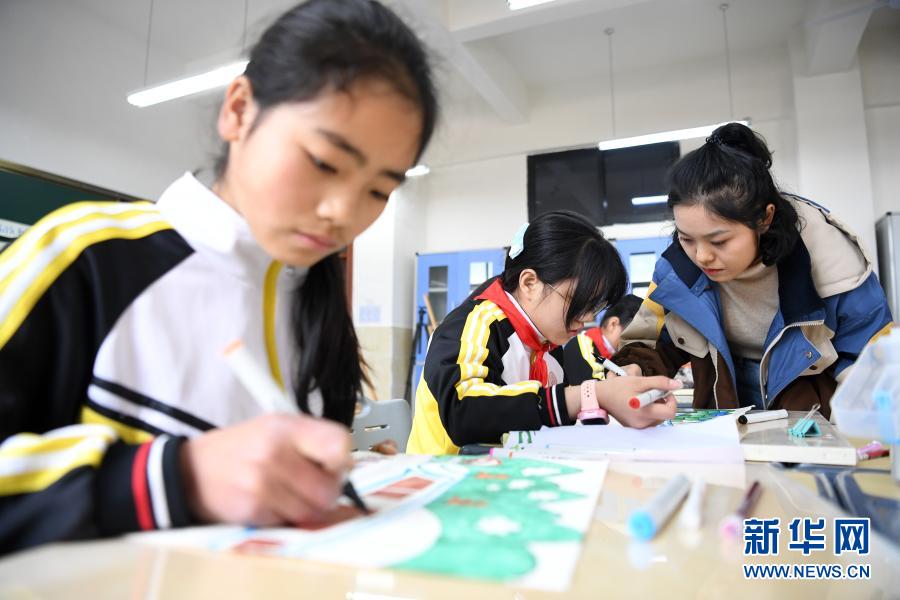 3月3日,小学生在老师的指导下创作安全主题画作。