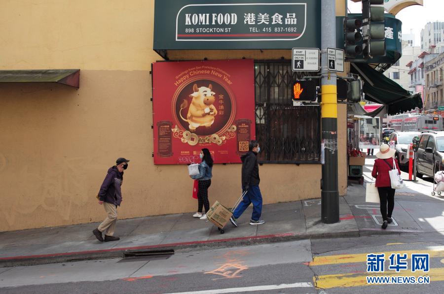 3月3日,人们走在美国加利福尼亚州旧金山唐人街街头。